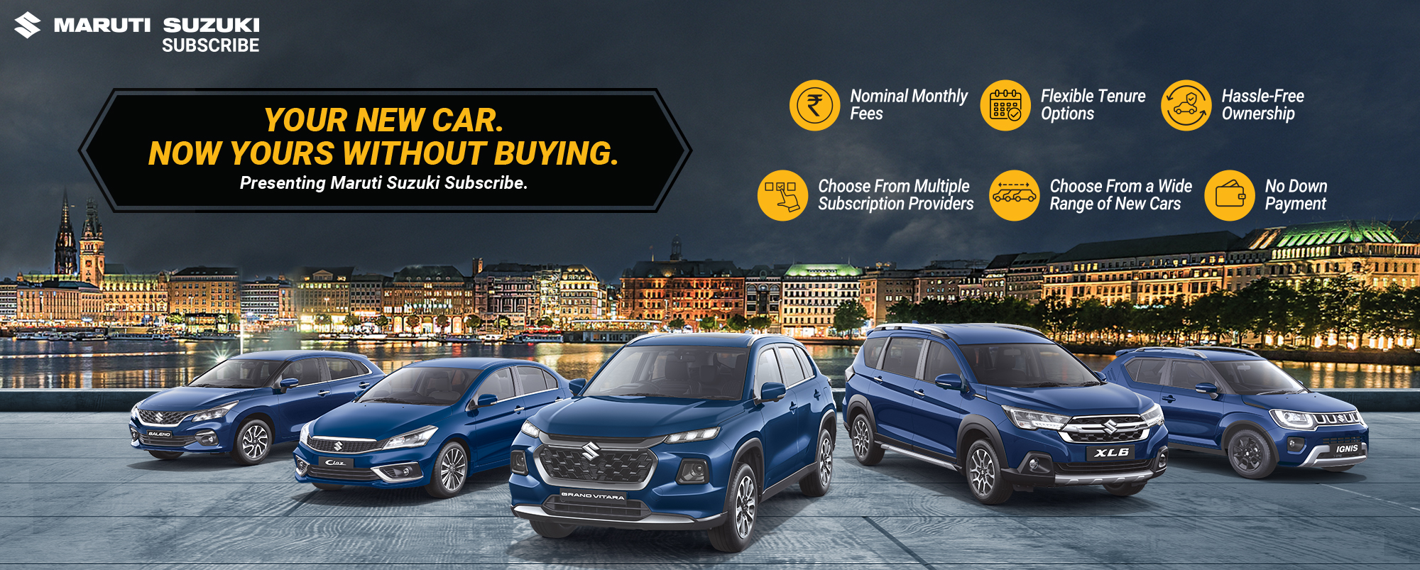Located in Kohima, Seyie Auto offers a plethora of options of Nexa cars for Maruti Suzuki Subscribe. You can choose your desired Maruti Suzuki car and drive it home at nominal monthly fees for a variety of flexible tenure periods. Whether you prefer Hatchback, Sedan, SUV or even MUV you are sure to find it at Seyie Auto, Meriema with an easy Maruti Suzuki Subscribe plan.